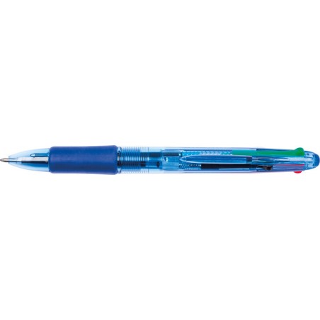 Q-CONNECT® Vierfarbenkugelschreiber Clip, Schiebemechanik, Schreibfarben: rot, blau, grün und schwarz, nicht nachfüllbar, Strichbreite 0,7 mm.