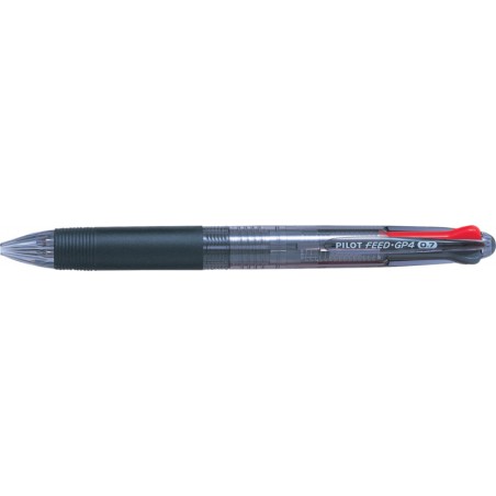 PILOT Vierfarbenkugelschreiber Feed GP4 BeGreen gummierte Griffzone, Schiebemechanik, Schreibfarben: rot, blau, grün und schwarz, nachfüllbar, Strichbreite 1 mm. Nachhaltigkeit eco:plus: verlängertes Produktleben, recycelter Bestandteil, Recycelgehalt Abfall vor Gebrauch max. 78%.