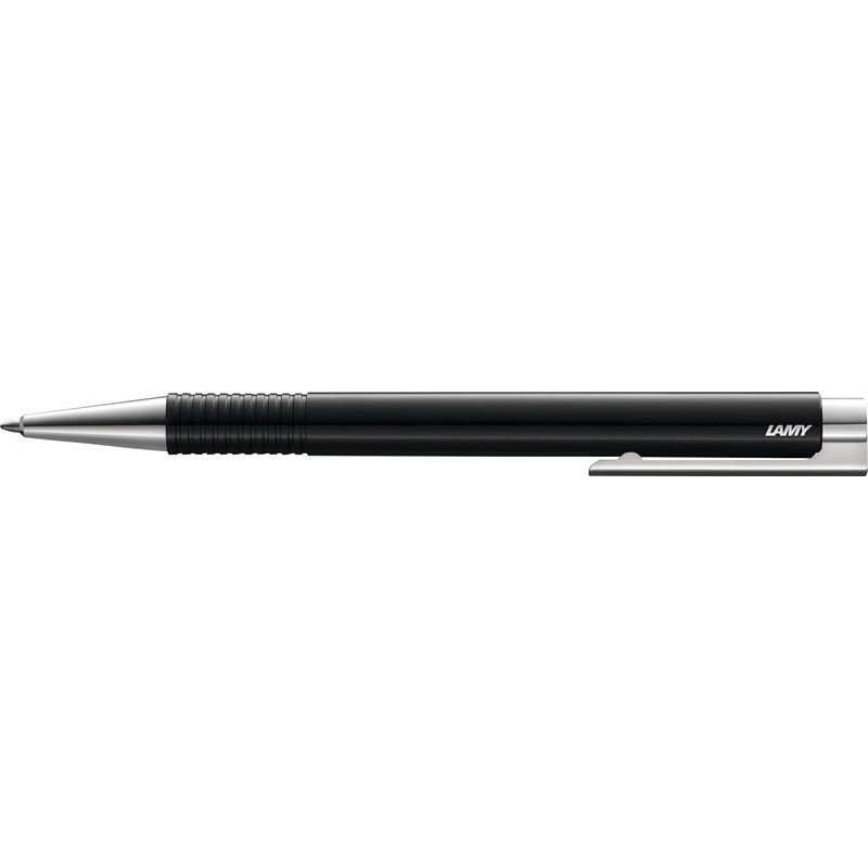 LAMY Kugelschreiber logo 204 M+ aus bruchfestem, hochglänzendem ABS, Druckknopf und Spitze aus verchromten Metallbeschlägen, Metallclip, Druckmechanik, Grossraummine LAMY M 16 B, Schreibfarbe blau, nachfüllbar.