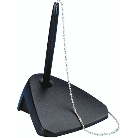 MAUL Kugelschreiberständer Modern Fuss aus bruchsicherem ABS, sicherer Stand, aufschrauben auf Tischplatten möglich, stabile Kugelkette, Länge 400 mm, dokumentenecht, Schreibfarbe schwarz, nachfüllbar. Masse: B 108 x H 150 x T 40 mm. Garantie: 3 Jahre. Nachhaltigkeit eco:plus: umweltfreundliche Verpackung.