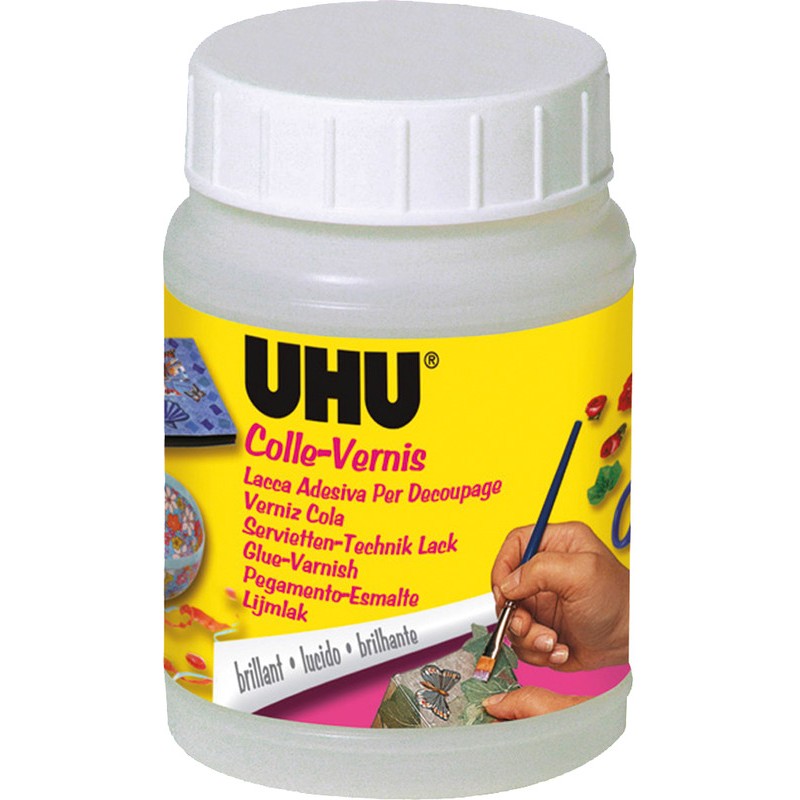 UHU® Serviettentechnik Lack fixieren und veredeln in einem, sehr ergiebig, schnell trocknend, wischfest, lichtecht, lösungsmittelfrei. Inhalt 150 ml.