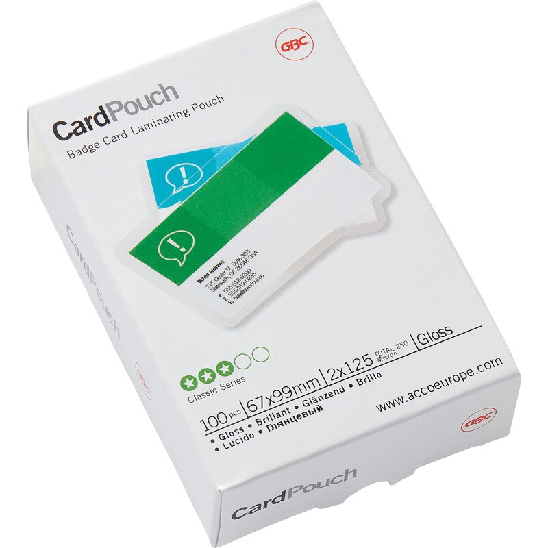 GBC® Laminierfolien in Premiumqualität auf 3 Seiten offen. Grösse 67 x 98,5 mm