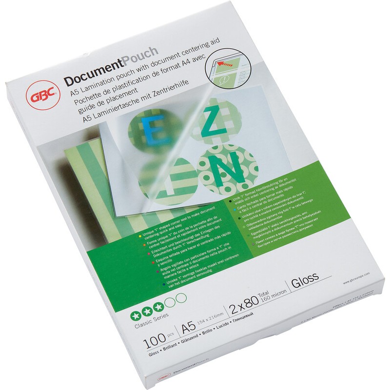 GBC® Laminierfolien in Premiumqualität auf 3 Seiten offen. Grösse: A5, 154 x 216 mm