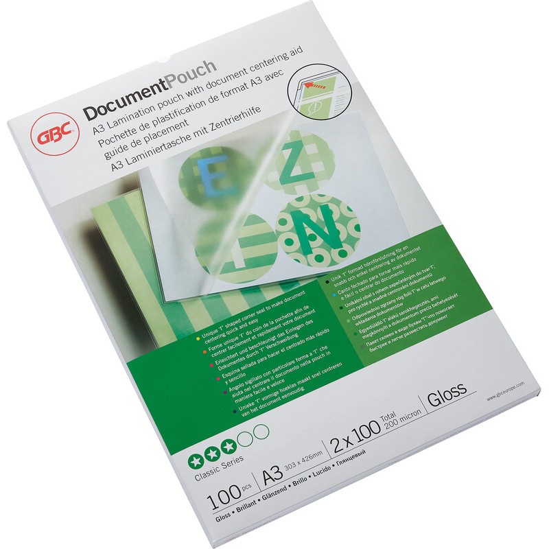 GBC® Laminierfolien in Premiumqualität auf 3 Seiten offen. Grösse A3, 303 x 426 mm
