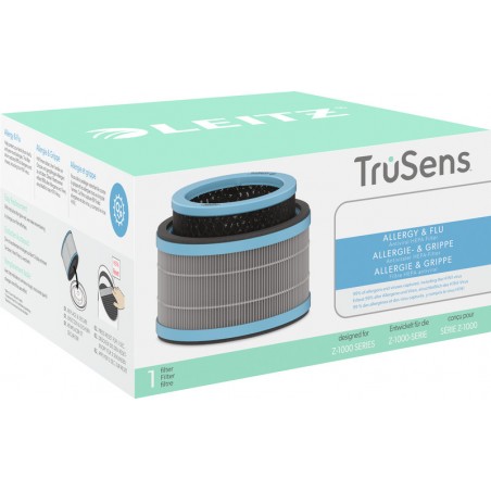 LEITZ® TruSens(TM) 3 in 1 Ersatzfilter mit Trommel Allergie & Grippe Antivirale für Luftreiniger TruSens zum Schutz vor Grippe und ganzjährigen Allergien, 360° Kombinationsfilter mit einem separaten waschbaren Maschen-Vorfilter, zum Auffangen grosser Partikel wie Staub, bestimmter Gerüche und Gase, mit einem antiviralen HEPA-Filter zum Einfangen kleiner Partikel ab einer Grösse von 0,3 Mikrometer und Aktivkohlefilter, fängt 99,97% der in der Luft befindlichen Allergene und Viren, einschliesslich des H1N1-Virus ab, für optimale Ergebnisse alle 12 Monate auswechseln, Kontrollleuchte für das Auswechseln der Filtertrommel. Masse: H 169,5 mm, Ø 83,2 mm. zu Luftreiniger Z-1000