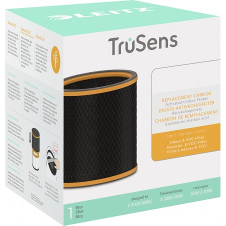 LEITZ® TruSens(TM) Ersatz-Aktivkohlefilter Gerüche & VOC für Luftreiniger TruSens 3-lagiger Aktivkohlefilter entfernt gängige Koch- und Reinigungsgerüche und flüchtige organische Gase (VOCs) wie Ammoniak, Aceton und Formaldehyd in der Luft, Vlies muss auf der Trommel des HEPA Filters Gerüche & VOC ersetzt werden, für optimale Ergebnisse alle 3 Monate auswechseln, Kontrollleuchte für das Auswechseln des Aktivkohlefilters. Masse: H 186,5 mm, Ø 13,8 mm.