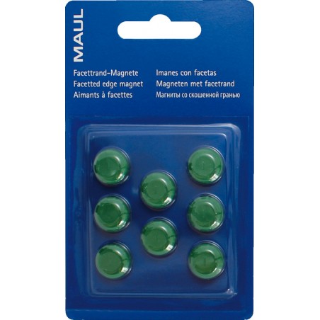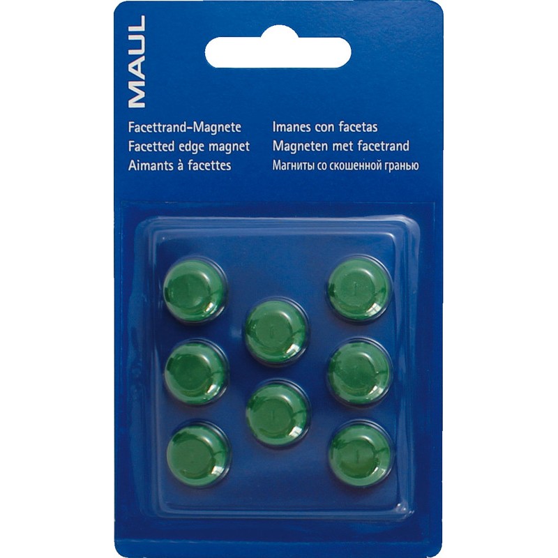 MAUL Facetterand-Magnete pro auf Blistercard Gehäuse aus bruchsicherem Luran, Oberfläche leicht erodiert, mit hochglanzpoliertem Facetterand, Spezialkleber sorgt für starken Halt des Magnetkerns im Gehäuse, Unterseite zum Schutz der magnetischen Oberfläche lackiert. Rundmagnete, Ø 15 mm, H 7 mm, Haftkraft 0,17 kg, Blister zu 8 Stück