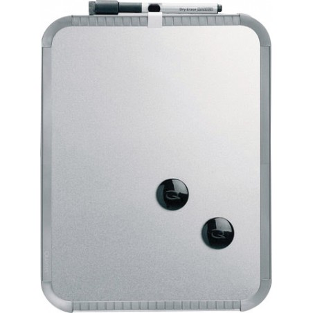 NOBO® Magnettafel zum Beschriften mit trocken abwischbaren Markern, magnetische Oberfläche, inkl. Marker mit integriertem Schwämmchen und Magnethalterung, 2 Magnete, Selbstklebestreifen und magnetische Aufhänger, Wandmontage im Hoch- oder Querformat möglich. Kunststoffrahmen silber metallic, Oberfläche silber
