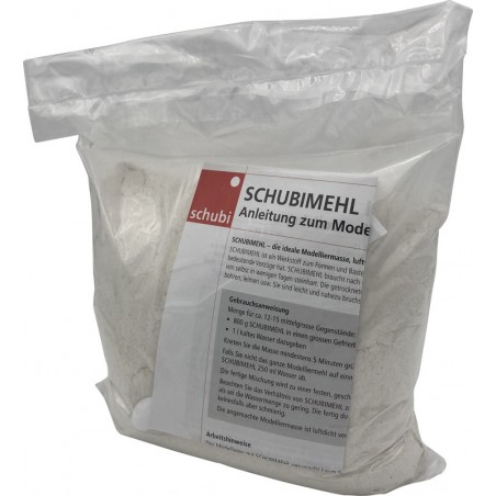 SCHUBI® Modelliermehl aus erstklassigen Hölzern gemahlen, einfach mit Wasser mischen, ist nach wenigen Tagen an der Luft steinhart und nahezu bruchfest, nach Trocknung in Form feilen, schnitzen, sägen, bohren, leimen, malen, lackieren usw., haftet auf fast allen Materialien, giftfrei und hautfreundlich, geeignet für Figuren, Modelle und Skulpturen sowie zum Überziehen von Gegenständen aus Holz, Styropor, Glas usw.
