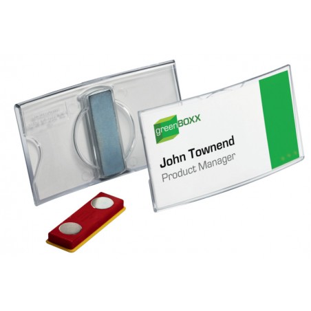 DURABLE Acryl-Namensschilder Konvex mit Magnet Einsteckschild wird durch die Klemmwirkung des einteiligen, gewölbten Namensschildes gehalten, rahmenlos, glasklare Oberfläche, mit Magnet für materialschonendes Befestigen, einfache Beschriftung mit kostenloser Beschriftungssoftware Duraprint® unter www.duraprint.de. Achtung: Magnete an Namensschildern können Herzschrittmacher stark beeinflussen. Schachtel zu 25 Stück. eco:plus: recycelter Bestandteil, Recycelgehalt Abfall nach Gebrauch max. 5%.