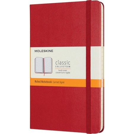 MOLESKINE® Notizbuch Classic Collection farbig aus PP, Gummibandverschluss, abgerundete Ecken, säurefreies Papier, 70 g/m2, Lesezeichen, interne Falttasche aus Karton und Textil. Nachhaltigkeit eco:plus: Recycelgehalt Abfall nach Gebrauch max. 50%. Zertifikat: FSC. Medium 115 x 180 mm, fester Einband, 208 Seiten