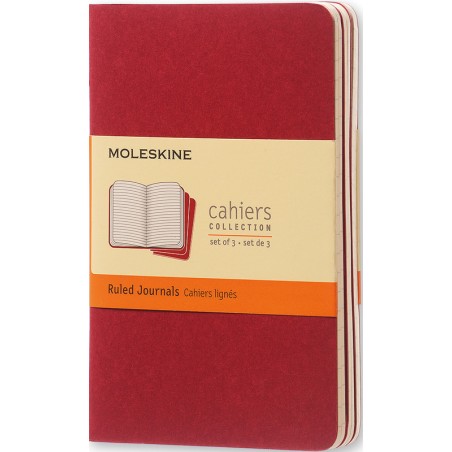 MOLESKINE® Notizhefte Cahiers Collection abgerundete Ecken, säurefreies Papier, 70 g/m2, sichtbare Fadenheftung am Rücken, mit grosser Innentasche für lose Notizzettel. Packung zu 3 Stück. Nachhaltigkeit eco:plus: Recycelgehalt Abfall nach Gebrauch max. 50%. Zertifikat: FSC. Pocket 90 x 140 mm, Kartoneinband, 64 Seiten die letzten 16 Seiten sind heraustrennbar.