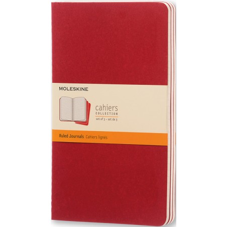 MOLESKINE® Notizhefte Cahiers Collection abgerundete Ecken, säurefreies Papier, 70 g/m2, sichtbare Fadenheftung am Rücken, mit grosser Innentasche für lose Notizzettel. Packung zu 3 Stück. Nachhaltigkeit eco:plus: Recycelgehalt Abfall nach Gebrauch max. 50%. Zertifikat: FSC. Large 130 x 210 mm, Kartoneinband, 80 Seiten die letzten 16 Seiten sind heraustrennbar.