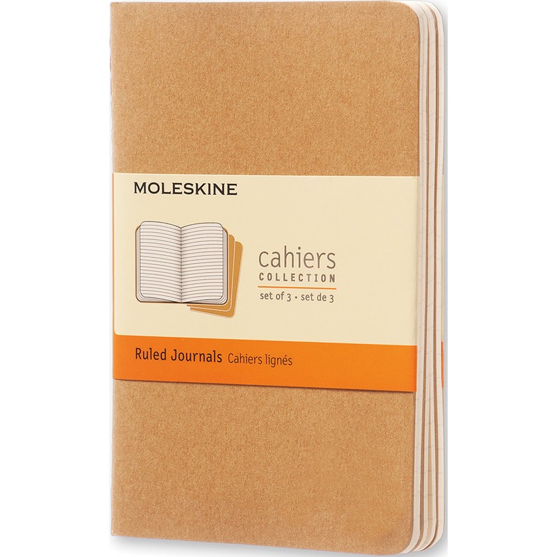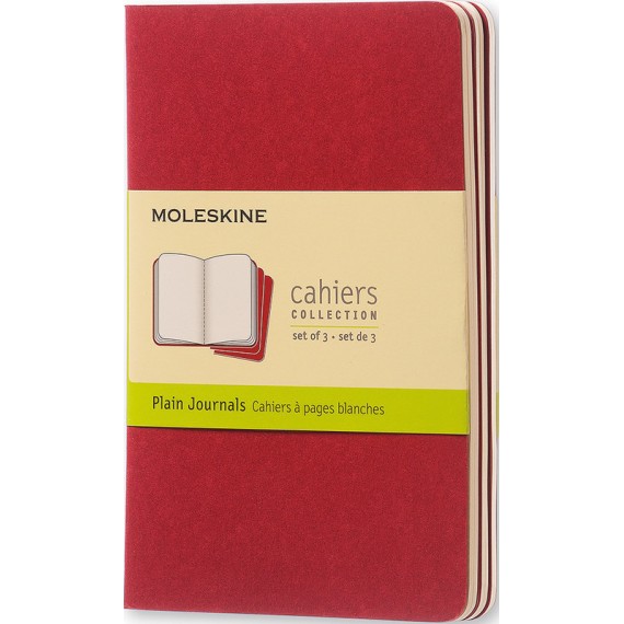 MOLESKINE® Notizhefte Cahiers Collection abgerundete Ecken, säurefreies Papier, 70 g/m2, sichtbare Fadenheftung am Rücken, mit grosser Innentasche für lose Notizzettel. Packung zu 3 Stück. Nachhaltigkeit eco:plus: Recycelgehalt Abfall nach Gebrauch max. 50%. Zertifikat: FSC. Pocket 90 x 140 mm, Kartoneinband, 64 Seiten die letzten 16 Seiten sind heraustrennbar.