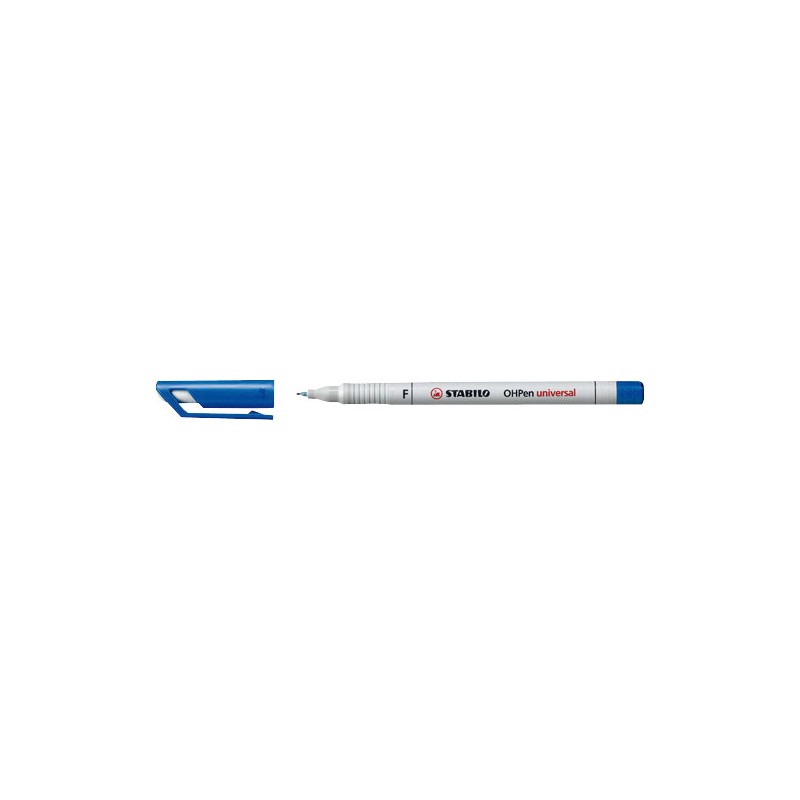 STABILO® OHPen universal wasserlöslich Clip, universell einsetzbarer Folienschreiber, nicht nur für Folien geeignet, sondern auch für den Einsatz auf fast allen glatten Oberflächen, wasserlösliche Tinte, feucht abwischbar, nicht nachfüllbar. Nachhaltigkeit eco:plus: umweltfreundliche Verpackung. fein (F), Strichbreite ca. 0,7 mm