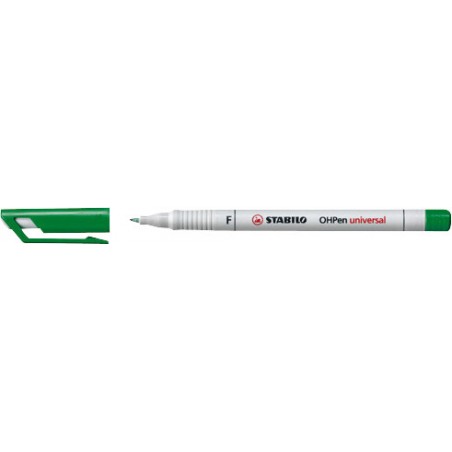STABILO® OHPen universal wasserlöslich Clip, universell einsetzbarer Folienschreiber, nicht nur für Folien geeignet, sondern auch für den Einsatz auf fast allen glatten Oberflächen, wasserlösliche Tinte, feucht abwischbar, nicht nachfüllbar. Nachhaltigkeit eco:plus: umweltfreundliche Verpackung. fein (F), Strichbreite ca. 0,7 mm