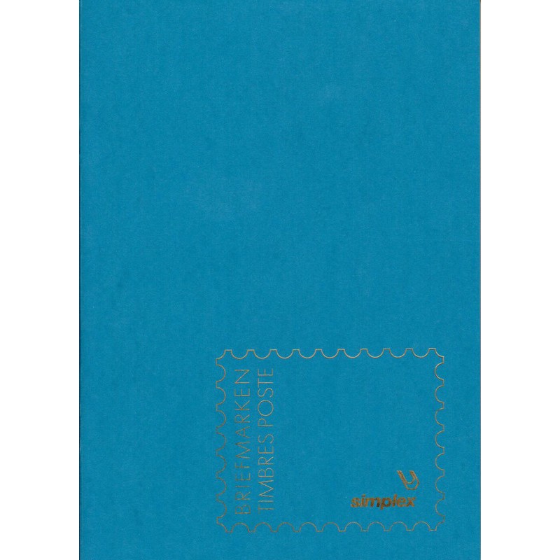 SIMPLEX Briefmarkenordner Einband aus Pressspan, 10 Einlageblätter geheftet, Register mit bedruckten Etiketten zum selber kleben, Format 175 x 240 mm.