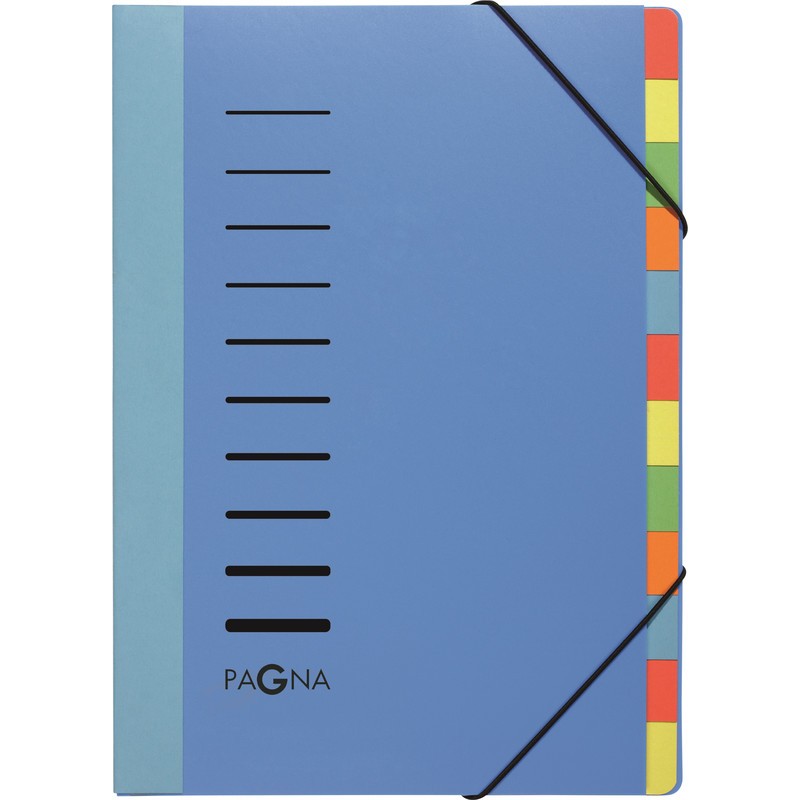 PAGNA® Ordnungsmappe Trend aus PP, mit farbigem Registerkarton, mit Gummibandverschluss, Indexdruck auf Vorderdeckel, mit dehnbarem Rücken, für Format A4.