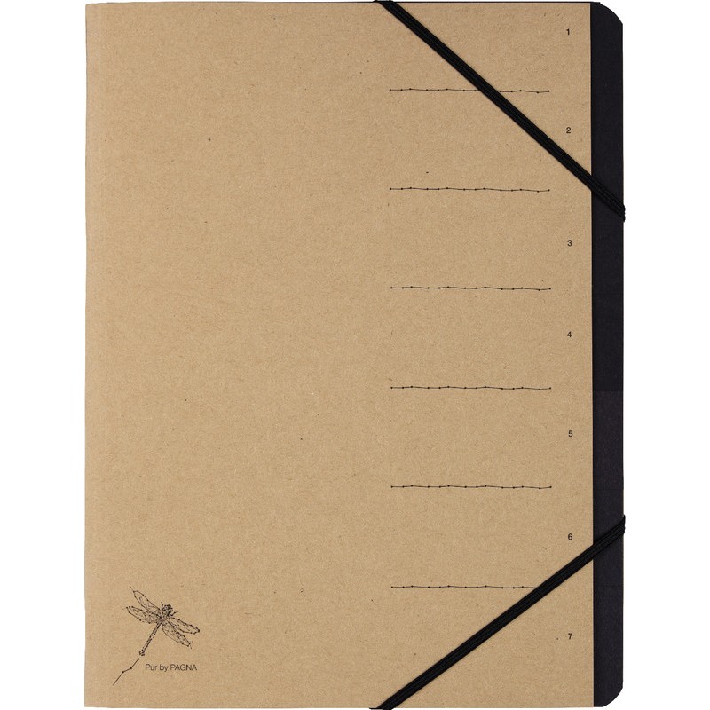 PAGNA® Ordnungsmappe Pur aus Recyclingkarton, schwarze Tabs, 2 Schaulöcher, Indexdruck auf Vorderdeckel, mit Prägung einer Libelle, mit Gummibandverschluss, für Format A4. Nachhaltigkeit eco:plus: kompostierbar, recyclingfähig.