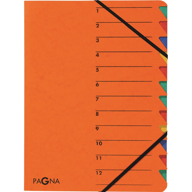PAGNA® Ordnungsmappe Easy aus Pressspan, mit farbigen Tabs, Indexdruck auf Vorderdeckel, mit Gummibandverschluss, für Format A4. Nachhaltigkeit eco:plus: recyclingfähig.