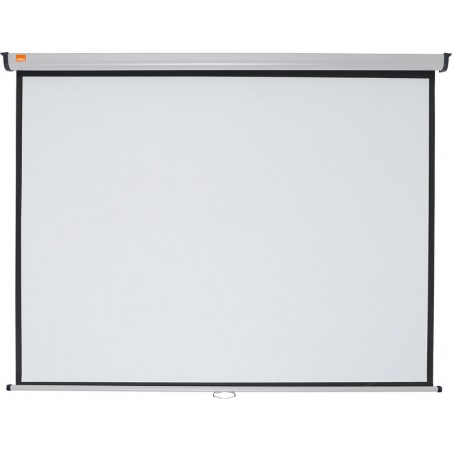 NOBO® Roll-Leinwand hoch reflektives Leinwandtuch, mattweiss, Leuchtdichtefaktor 1,1, Weitwinkel 160° für exzellente Rundumsicht, für alle Projektionsarten geeignet, Metallkorpus silber/grau, Rollmechanik für stufenlos einstellbare Tuchhöhe, schwarze Bildumrandung zur verbesserten Kontrastdarstellung, Format 4:3, für Wand- oder Deckenmontage. Im Lieferumfang enthalten: 2 Schrauben.