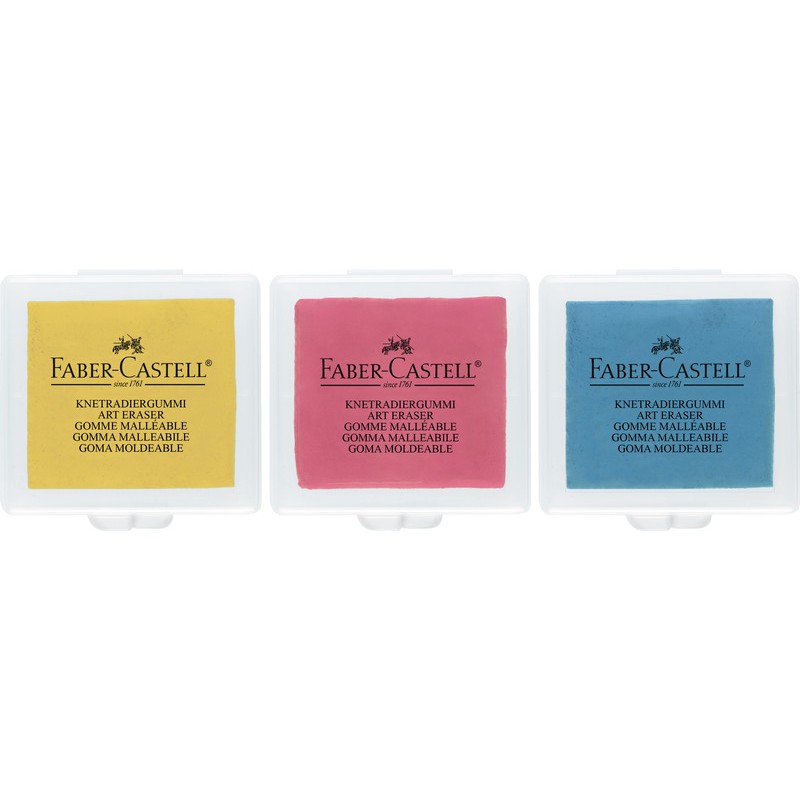 FABER-CASTELL Knetradierer Art Eraser knetbar und aufnahmefähig, zum Korrigieren und Aufhellen von Kohle- und Pastellarbeiten sowie zum Reinigen von Folien und Reinzeichnungen, PVC-frei, in transparenter Box. Masse: B 38 x H 8 x T 35 mm.