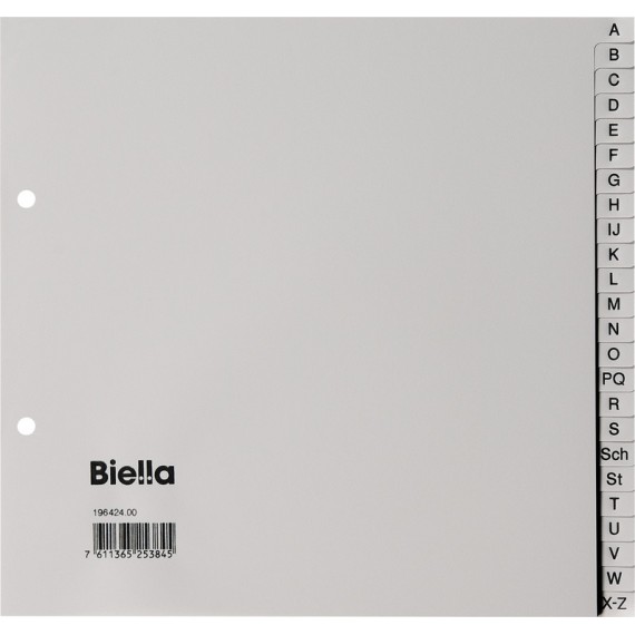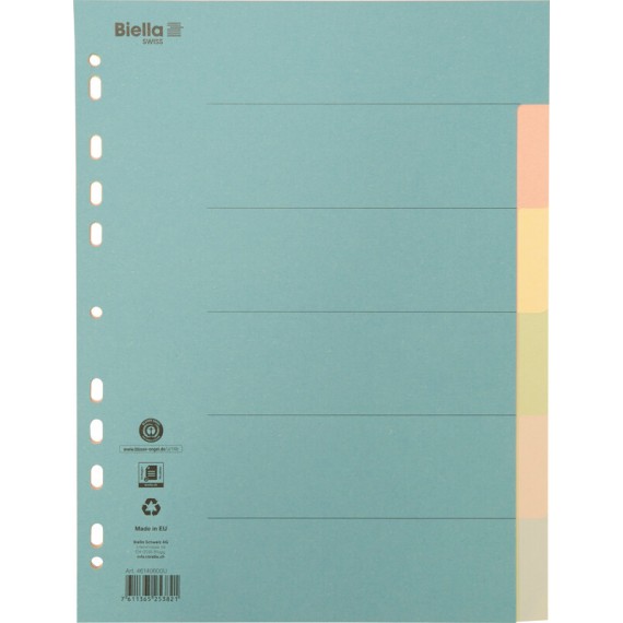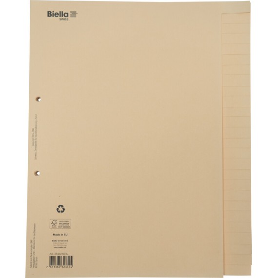 BIELLA Bauabrechnungsregister aus Recyclingkarton, 170 g/m2, braun, 26-teilig, 2 Loch, Format 210/240 x 297 mm, für Format A4, offizielles Bauabrechnungsregister der Schweizerischen Zentralstelle für Baurationalisierung CRB. Nachhaltigkeit eco:plus: recycelter Bestandteil. Zertifikat: FSC.