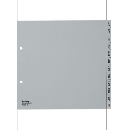 KOLMA® Register LongLife teildeckend grau aus extrem langlebigem, transparentem Material (PVC), grau, sehr widerstandsfähig und reissfest, die ovale Lochung garantiert ein müheloses Umblättern. Nachhaltigkeit eco:plus: verlängertes Produktleben, recyclingfähig, Recycelgehalt Abfall nach Gebrauch max. 100%.