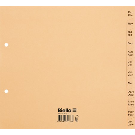 BIELLA Register teildeckend aus Karton 160 g/m2, hellbraun. Nachhaltigkeit eco:plus: recycelter Bestandteil. Zertifikat: FSC.