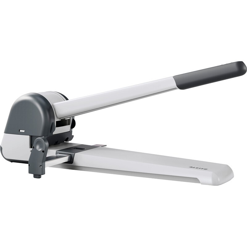LEITZ® Superlocher 5182 aus Aluminium-Druckguss und Kunststoff, 56% recyceltem Kunststoff (Post-Consumer), Lochpfeifen aus Spezialstahl, für 8 cm Lochabstand, Loch Ø 6 mm, langer Griff mit rutschfestem Überzug, praktische Abfallschublade, Metall-Anschlagschiene mit Einstellskala bis Format A3, Stanzvermögen ca. 25 mm (250 Blatt). Garantie: 10 Jahre (Lochpfeifen ausgenommen). Zertifikat: GS. Nachhaltigkeit eco:plus: recyclingfähig, recycelter Bestandteil, Recycelgehalt Abfall nach Gebrauch max. 100%.
