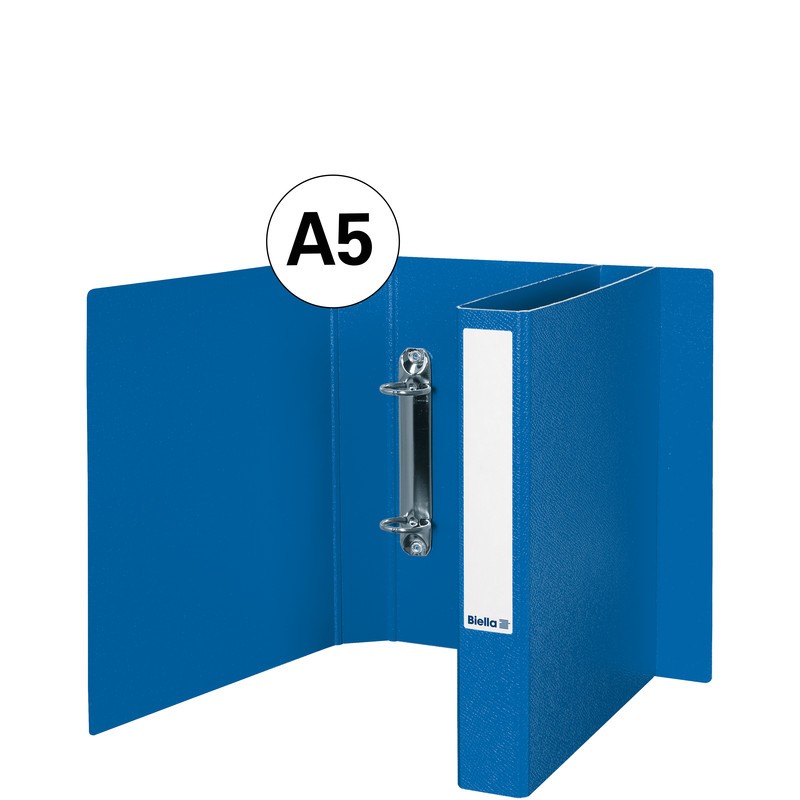 BIELLA Ringbuch Viria® aus recyceltem, farbigem Graukarton 0,95 mm, aufgeklebtes Papier-Rückenschild, 2-Ring-Mechanik, Ø 25 mm. für Format A5, ohne Griffloch