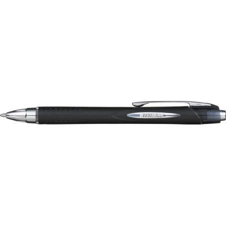 UNI-BALL Roller Jetstream RT Schaft aus PC, rostfreie Stahlspitze, gummierter Schaft, gute Gleitfähigkeit ermöglicht fliessendes Schreiben, wasserfest, beständig gegen Ausbleichen und Verfärben, hohe Farbbrillanz, trocknet sofort, Metallclip, Druckmechanik, Schaftende in der Schreibfarbe, Strichbreite ca. 0,45 mm.