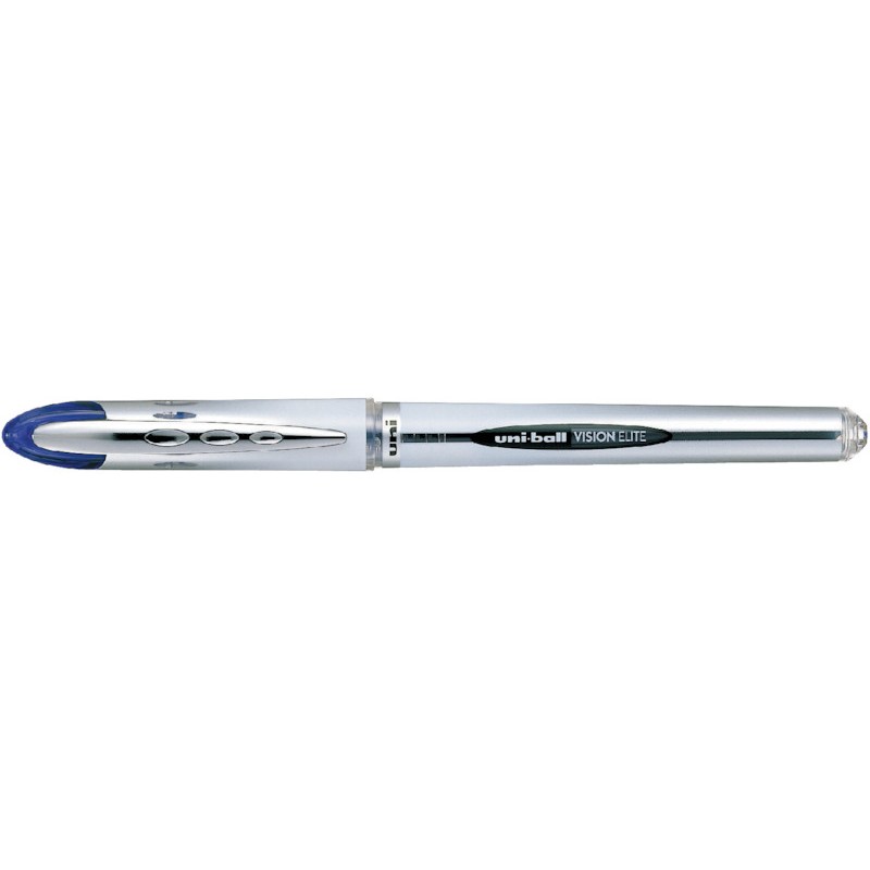 UNI-BALL Roller Vision Elite weisser Schaft aus PC, rostfreie Kugelspitze, wasserfeste und lichtbeständige Tinte, Sicherheits-System verhindert das Auslaufen der Tinte bei schnell wechselndem Luftdruck, Clip, Kappenende in der Schreibfarbe, Strichbreite 0,6 mm.