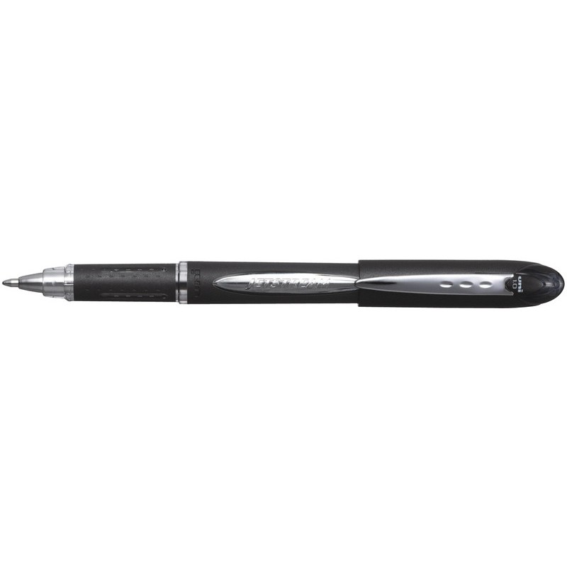 UNI-BALL Roller Jetstream rostfreie Stahlspitze, gummierte Griffzone, Kappe mit Clip, gute Gleitfähigkeit ermöglicht fliessendes Schreiben, wasserfest, beständig gegen Ausbleichen und Verfärben, hohe Farbbrillanz, nachfüllbar, Kappenende in der Schreibfarbe, Strichbreite ca. 0,45 mm.
