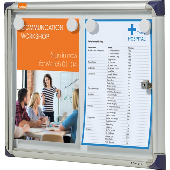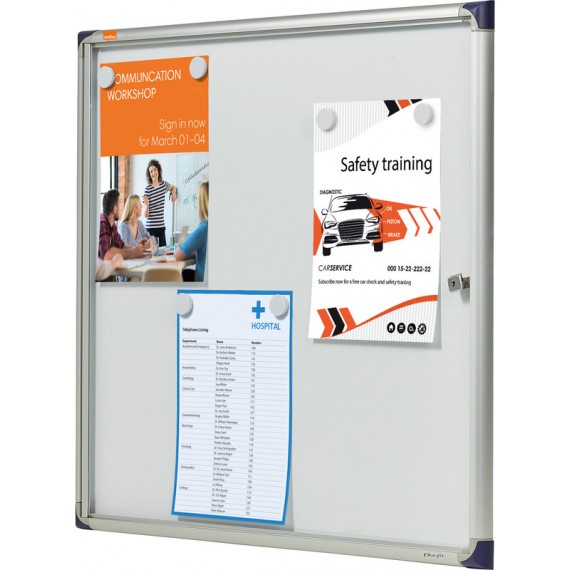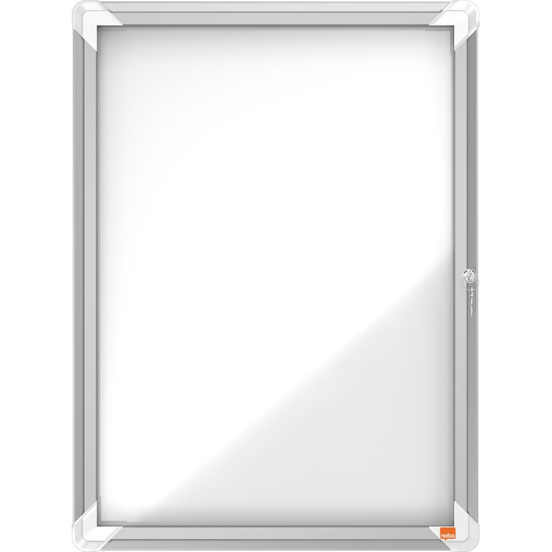 NOBO® Schaukasten Premium Plus für den Innenbereich abschliessbarer Schaukasten für den Innenbereich mit Aluminiumrahmen, Sicherheitsschloss mit 2 Schlüsseln, Klapptür aus 4 mm Sicherheitsglas, magnetische Metallrückwand, beschriftbar mit trocken abwischbaren Markern, 18 mm nutzbare Innentiefe, inkl. Wandmontagesatz.
