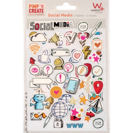 WALTHER Schmucketiketten Pimp 'N Create Motive aus Papier, selbstklebend, Blattformat 145 x 218 mm. Beutel zu 2 Blatt, mit 2D-Sticker und mit 3D-Sticker. Nachhaltigkeit eco:plus: recyclingfähig, umweltfreundliche Verpackung.