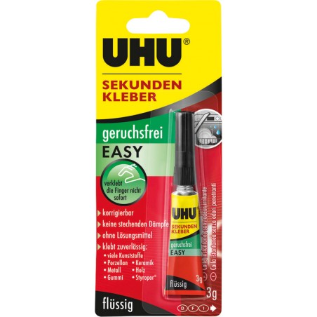 UHU® Sekundenalleskleber Easy geruchsfrei flüssig flüssig, ohne stechende Dämpfe, lösungsmittelfrei, ideal für glatte Materialien (auch für Styropor geeignet), fliesst in kleinste Ecken und Spalten.