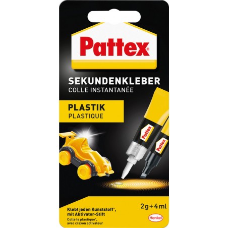 PATTEX® Sekundenkleber Plastix universeller Sekundenkleber für alle Sofortreparaturen, klebt alle Kunststoffe, wird in 2 Teilen per Aktivator-Stift und Klebstoff-Tube aufgetragen, klebt sofort, Tubenverschluss mit Nadel, keine verklebte Spitze.