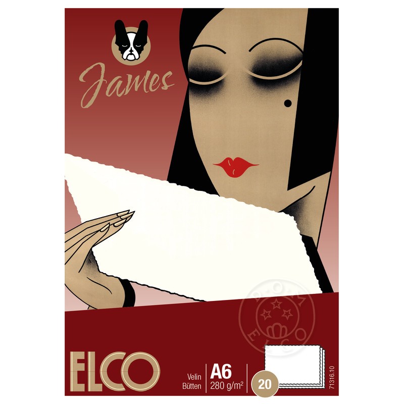 ELCO Schreibkarten James Velin hochwertiges weisses Papier mit Wasserzeichen und Büttenrand, 280 g/m2. Cello-Zip zu 20 Stück. Nachhaltigkeit eco:plus: Zertifikat: FSC.