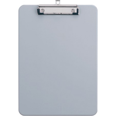 MAUL Schreibplatte aus PS, 2,2 mm, abgerundete Ecken, kurze, flache, Bügelklemme mit Griffmulde, verchromt, Klemmweite ca. 8 mm, mit Aufhängevorrichtung, recycelbar, für Format A4.