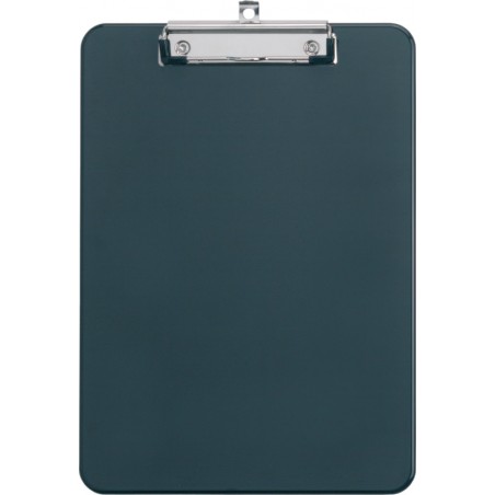 MAUL Schreibplatte aus PS, 2,2 mm, abgerundete Ecken, kurze, flache, Bügelklemme mit Griffmulde, verchromt, Klemmweite ca. 8 mm, mit Aufhängevorrichtung, recycelbar, für Format A4.