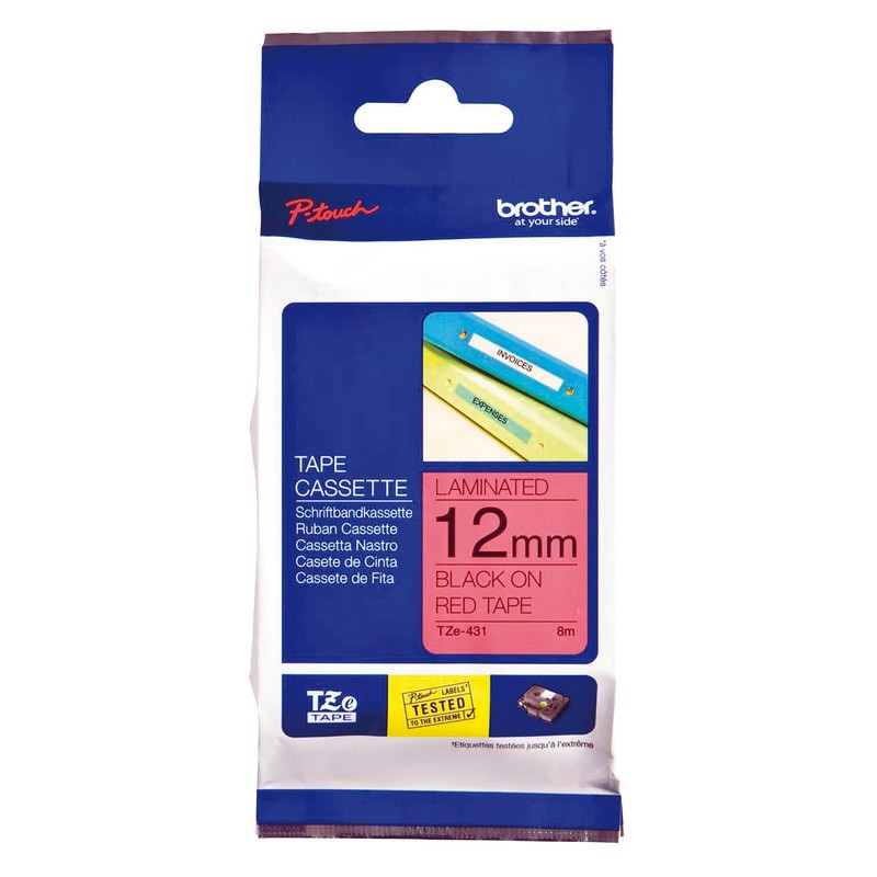 BROTHER P-touch Schriftband TZe laminiert wisch-, wetter- und kratzfest, temperatur- und UV-beständig, für zu Hause, im Büro und am Arbeitsplatz. Breite 12 mm, Länge 8 m