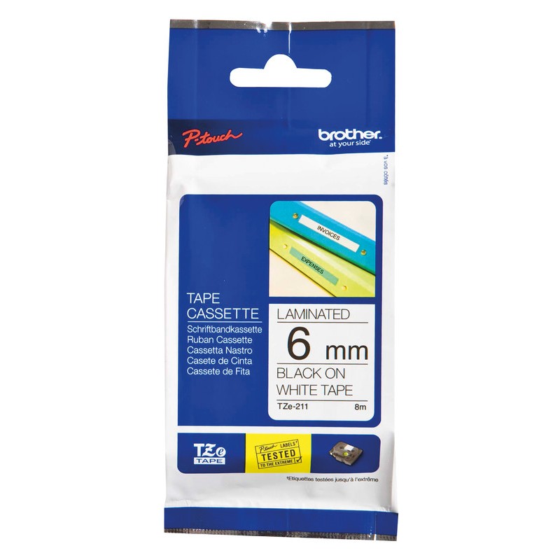 BROTHER P-touch Schriftband TZe laminiert wisch-, wetter- und kratzfest, temperatur- und UV-beständig, für zu Hause, im Büro und am Arbeitsplatz. Breite 6 mm, Länge 8 m