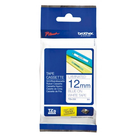 BROTHER P-touch Schriftband TZe laminiert wisch-, wetter- und kratzfest, temperatur- und UV-beständig, für zu Hause, im Büro und am Arbeitsplatz. Breite 12 mm, Länge 8 m