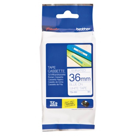 BROTHER P-touch Schriftband TZe laminiert wisch-, wetter- und kratzfest, temperatur- und UV-beständig, für zu Hause, im Büro und am Arbeitsplatz. Breite 36 mm, Länge 8 m