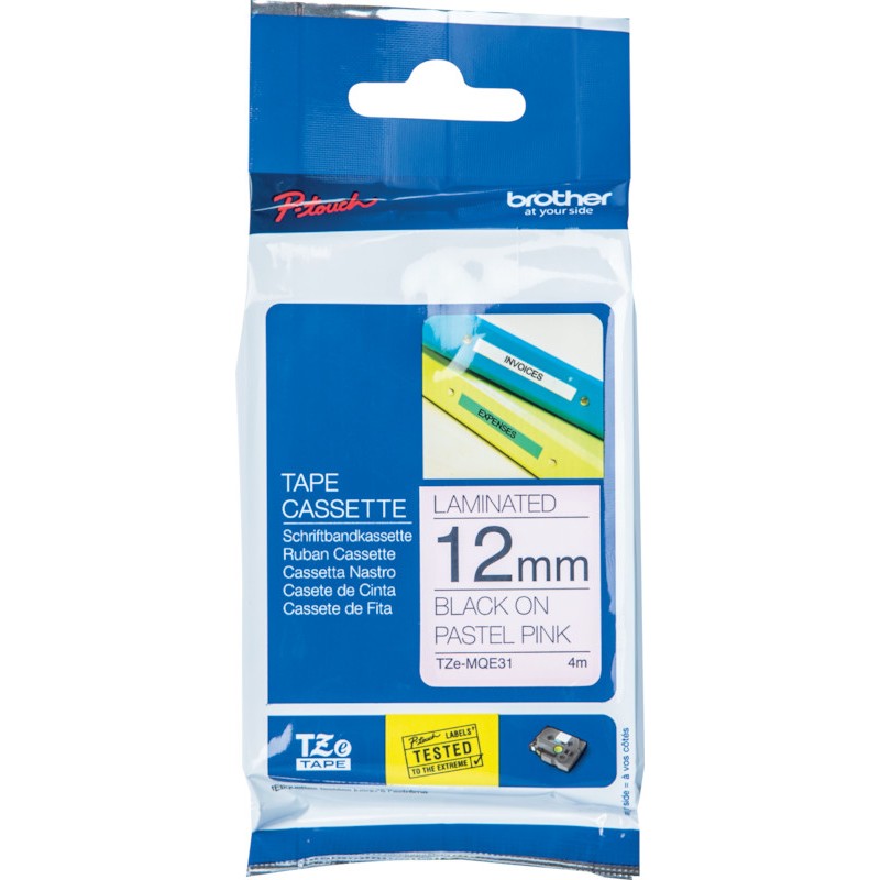 BROTHER P-touch Schriftband TZe laminiert wisch-, wetter- und kratzfest, temperatur- und UV-beständig, für zu Hause, im Büro und am Arbeitsplatz. Breite 12 mm, Länge 4 m