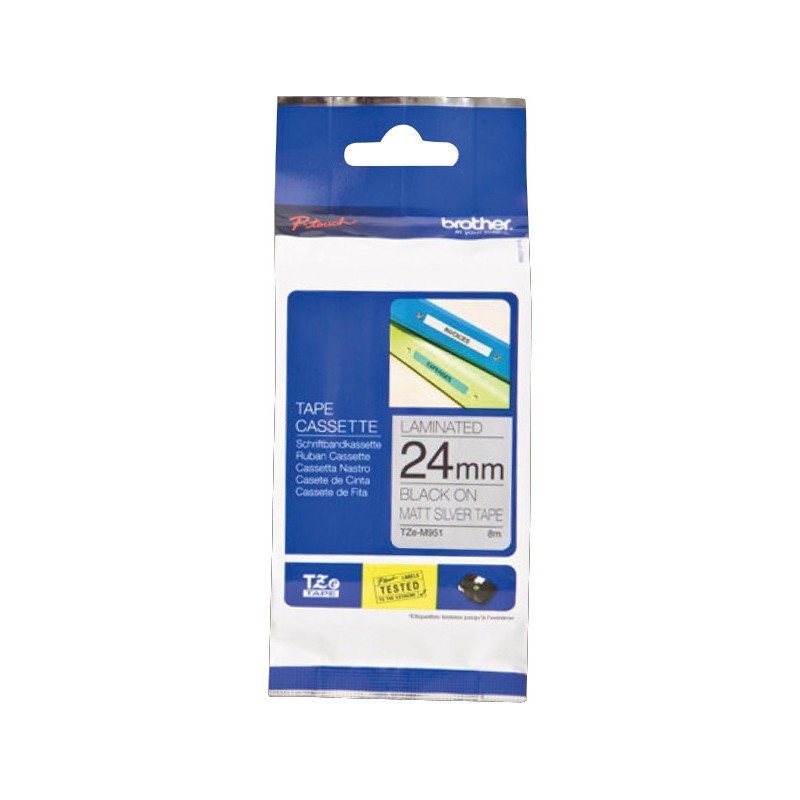 BROTHER P-touch Schriftband TZe laminiert wisch-, wetter- und kratzfest, temperatur- und UV-beständig, für zu Hause, im Büro und am Arbeitsplatz. Breite 24 mm, Länge 8 m