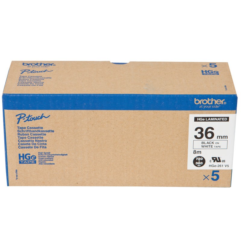 BROTHER P-touch Schriftband HGe laminiert hohe Druckgeschwindigkeit, Länge 8 m. Packung zu 5 Stück. Breite 36 mm