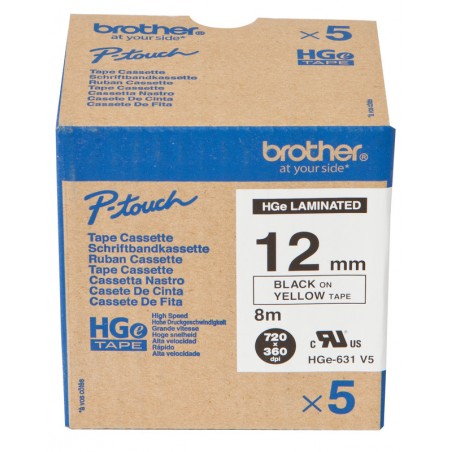 BROTHER P-touch Schriftband HGe laminiert hohe Druckgeschwindigkeit, Länge 8 m. Packung zu 5 Stück. Breite 12 mm