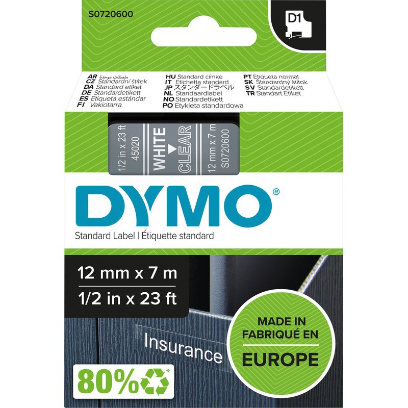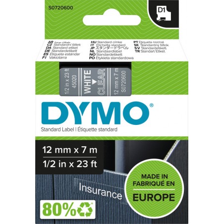 Dymo Band D1 12mm klar/weiss